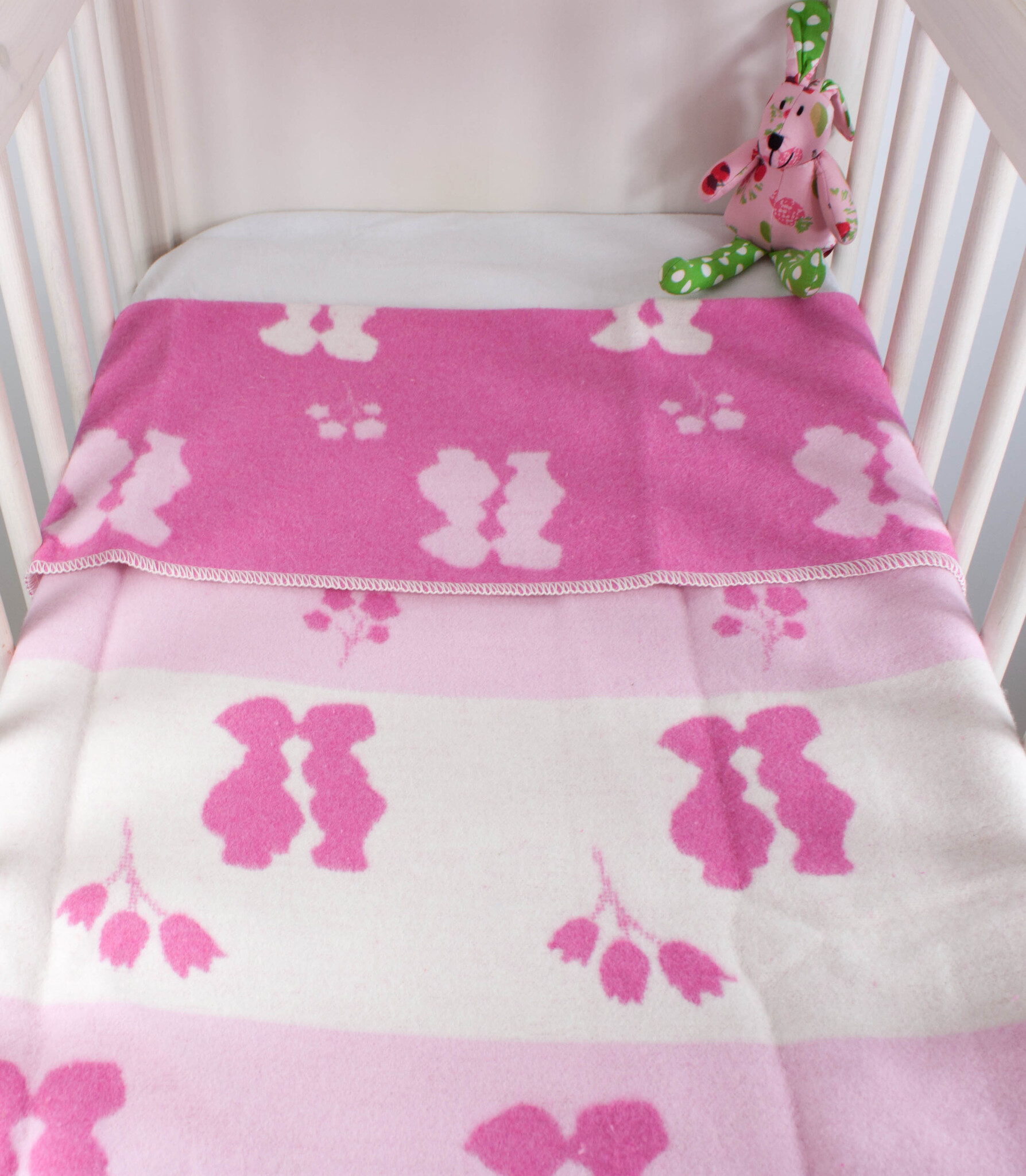 Wiegdeken katoen 100x70cm Boer-Boerin roze - fuchsia