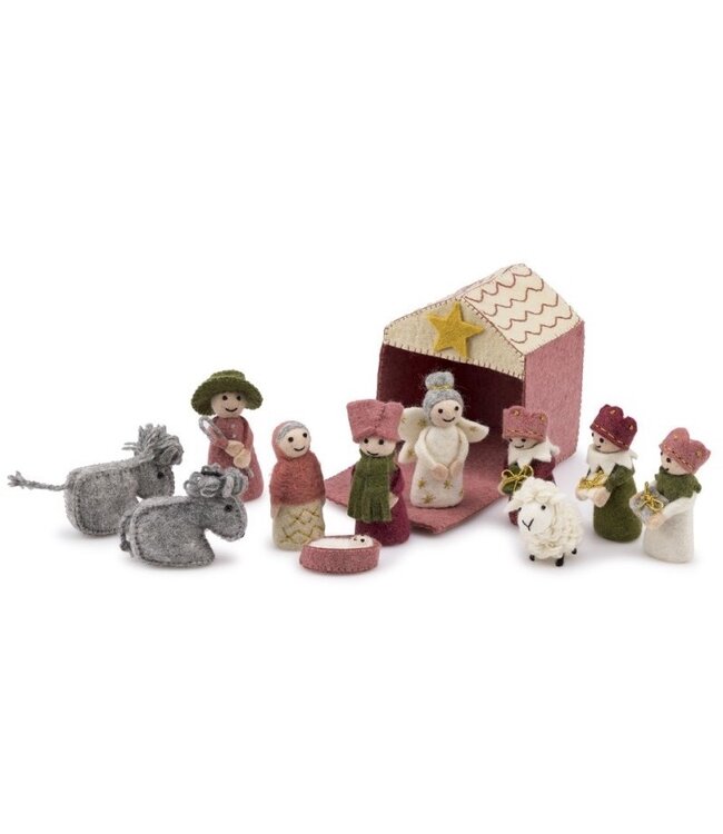 De kerstfiguren passen allemaal in de stal van vilt, waardoor het geheel zeer compact op te bergen is.